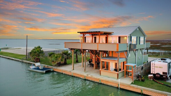 Godetevi la vera esperienza promontorio con vista a 360 gradi e una spiaggia curata proprio dall'altra parte della strada. Siamo il punto principale del percorso di canoa in kayak locale del Texas con miglia di fantastiche gite in barca e pesca proprio fuori dalla porta sul retro. Christmas Bay è il paradiso dei pescatori di wade. Porta la tua barca e legala al tuo molo privato.