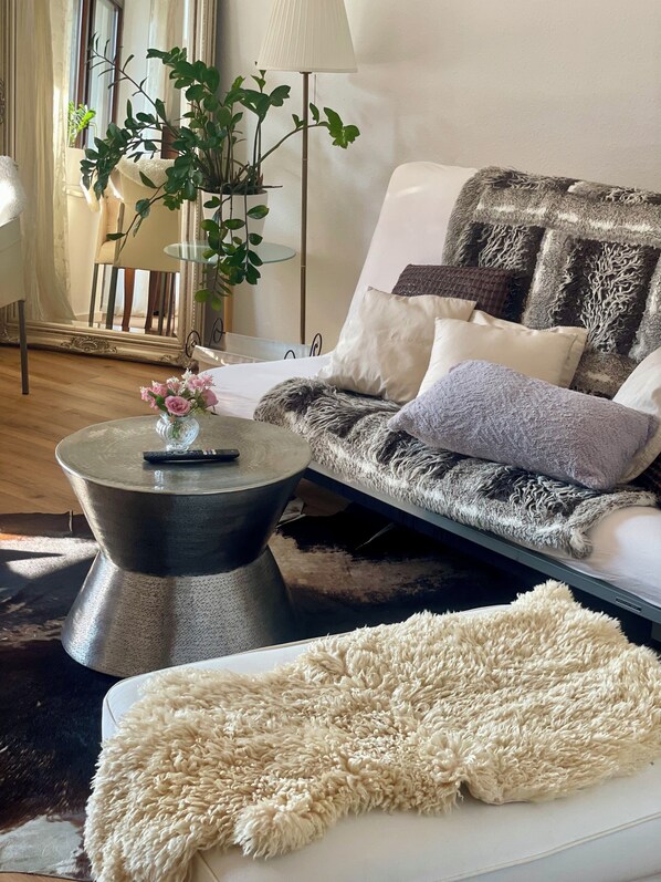 Das Gute zuerst: See und Geschäfte, dazu Restaurants sind in der Nähe und zu Fuß erreichbar. Die Gastgeber sind immer erreichbar gewesen und super lieb und zuvorkommend. Sie sind dreimal gekommen, um Dinge zu richten. Aber: letzteres wäre nicht nötig gewesen, wenn diese Wohnung regelmäßig gewartet würde. Die Fußbodenheizung konnte ich nicht selbst anstellen, die Fernsehprogramme nicht selbst installieren, im Bad fehlte Licht. Und es gibt weder einen Platz zum gemeinsamen Essen noch einen Arbeitsplatz. Auch hier würde rasch Abhilfe geschaffen; aber letztendlich muss man sagen, dass die Wohnung so, wie sie ist, nur für eine Person geeignet ist. Die Einrichtung ist aus den 70er Jahren mit orangen Clo und Waschbecken und den typischen braunen Kacheln. Es müsste gestrichen werden, der Boden ( Laminat) ist an vielen Stellen defekt. Hier wurde Jahrzehnte lang nicht investiert. Eigentlich schade! Und: in der Erntesaison rattern im 5-Minutentakt Traktoren mit äpfelgefüllten Traktoren am Haus vorbei. Aber nachts - da ist es ruhig. Insgesamt ist die Bilanz also gemischt, das Preis-Leistungsverhältnis wahrscheinlich gar nicht schlecht.