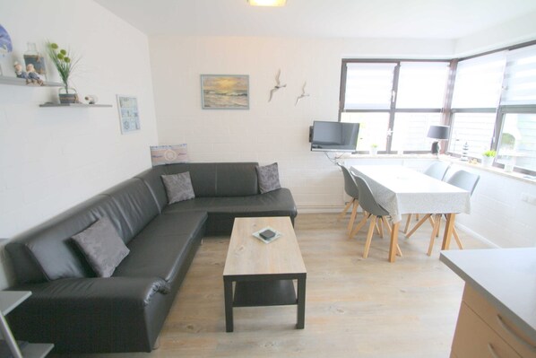 Descrizione: Grande Balje 17b bella casa bifamiliare ben tenuta con circa 48 m² di soggiorno u. Area utilizzabile per 4 persone Piano terra: soggiorno con zona pranzo separata e cucina aperta (lavastoviglie, forno a microonde, frigo + congelatore, piano cottura in vetroceramica 2 piastre (microonde con funzione grill e Heizluftbackofen circa 25 litri), elettrodomestici da cucina e stoviglie sono sufficientemente disponibili (caffettiera, bollitore, Senseo , Tostapane ecc.) Sat-TV (digitale), schermo piatto, impianto stereo con lettore CD doccia + WC + lavatrice + asciugacapelli: 2 camere da letto (1 letto 180 x 200 cm, 2 letti singoli 90 x 200 cm) Nella camera dei bambini è digitale -Sat TV (schermo piatto sul muro) lettino da viaggio, seggioloneGasheizruhige vicolo cieco, grande, circa 300 mq giardino recintato, (recinzione a doppio palo, circa 120 cm di altezza) bella terrazza appartata con sedie a sdraio e mobili da giardino e barbecue, a circa 300 metri dalla spiaggia, posto auto coperto, Sauna esterna a pagamento, deposito per biciclette Tutti i rivestimenti per pavimenti sono lavabili! Informazioni sulla prenotazione cane benvenuto gratuitamente. Lenzuola e 2 asciugamani a persona sono inclusi nel prezzo di affitto. Ogni cane costa 15 euro una volta! Sono ammessi un massimo di 2 cani. Il gatto non è permesso