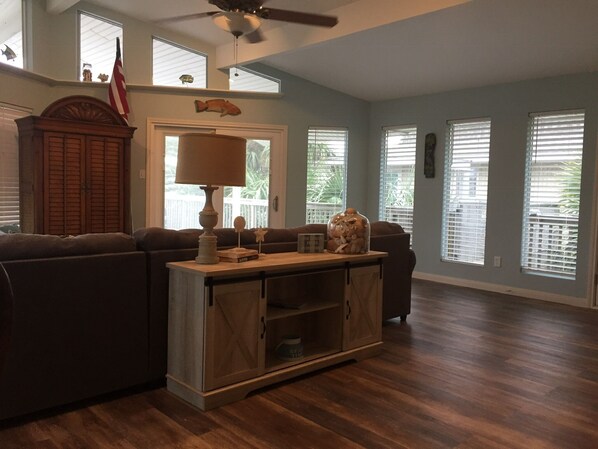 La casa dispone di tre camere da letto e tre bagni completi. Due camere da letto hanno letti queen size e la terza ha letti a castello con doppio sul fondo, due letti singoli e un letto estraibile doppio estraibile. Lenzuola e asciugamani sono forniti. Lavatrice e asciugatrice si trovano al piano di sotto. Televisore a schermo piatto HD nel soggiorno con lettore DVD. Offriamo anche una selezione di giochi da tavolo, puzzle e un gioco di backgammon. La cucina è fornita di piatti, posate, pentole e padelle, Mr. Caffettiera e Keurig K Cup. Internet wireless ad alta velocità.