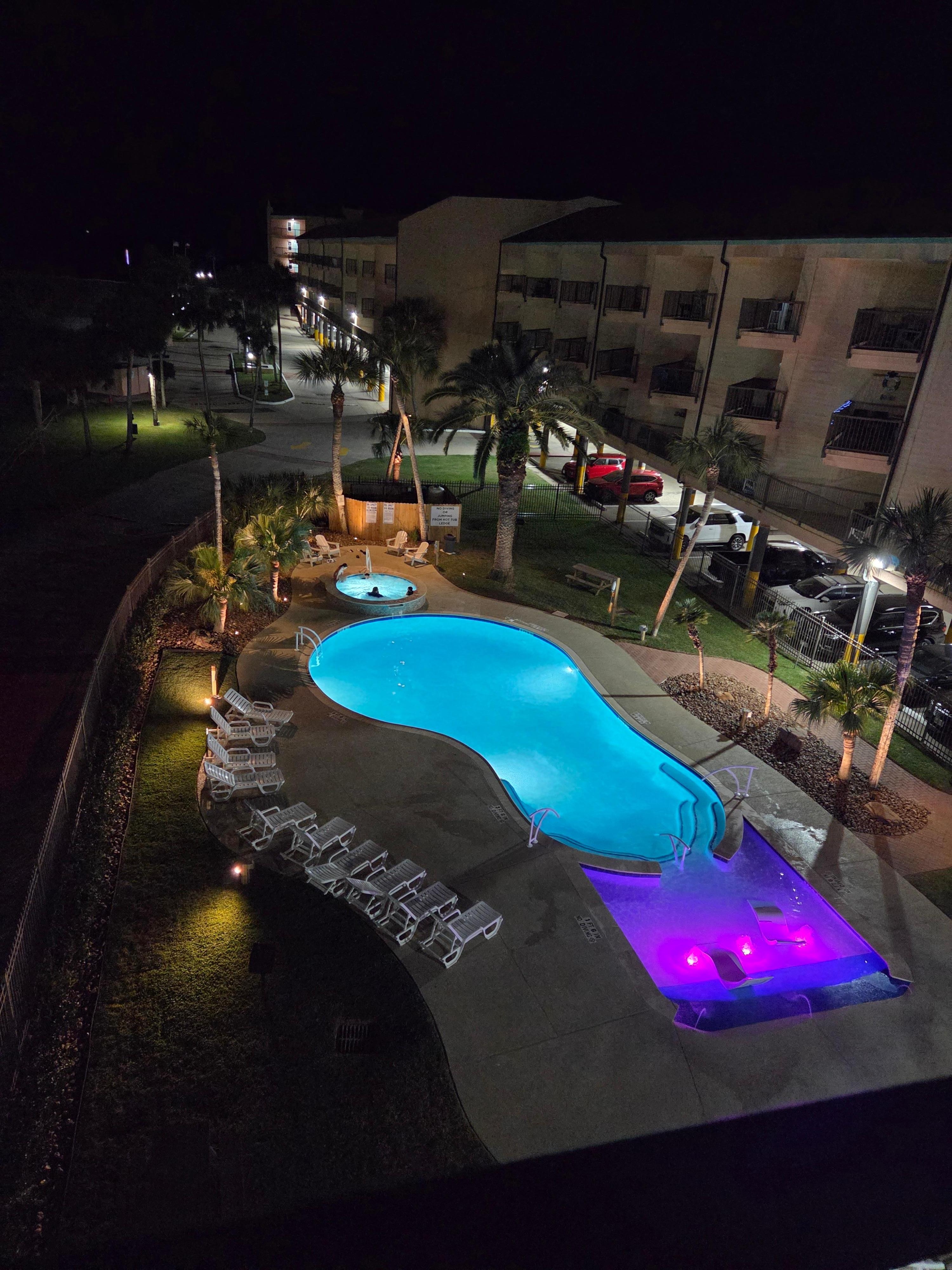 Just what our group needed. Heated pool and hot tub were excellent. Nice location... not near the busyness, but there were a few things to walk to. Construction was occuring on complex did not bother our stay.