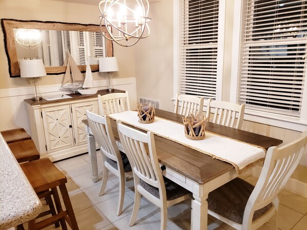 The kitchen is fully equipped with refrigerator, oven, cook top, microwave, utensils (service for 8), Keurig coffee maker, blender, toaster, and much more. Convenient washer and dryer with detergent pods and dryer sheets available for your use.