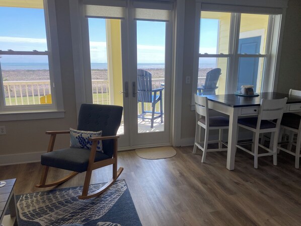 We had a great stay at this condo. Super clean, cute beach decorations, well stocked kitchen, comfy beds and gorgeous view. Can hear the waves from the balcony. Walkway to beach close by too.