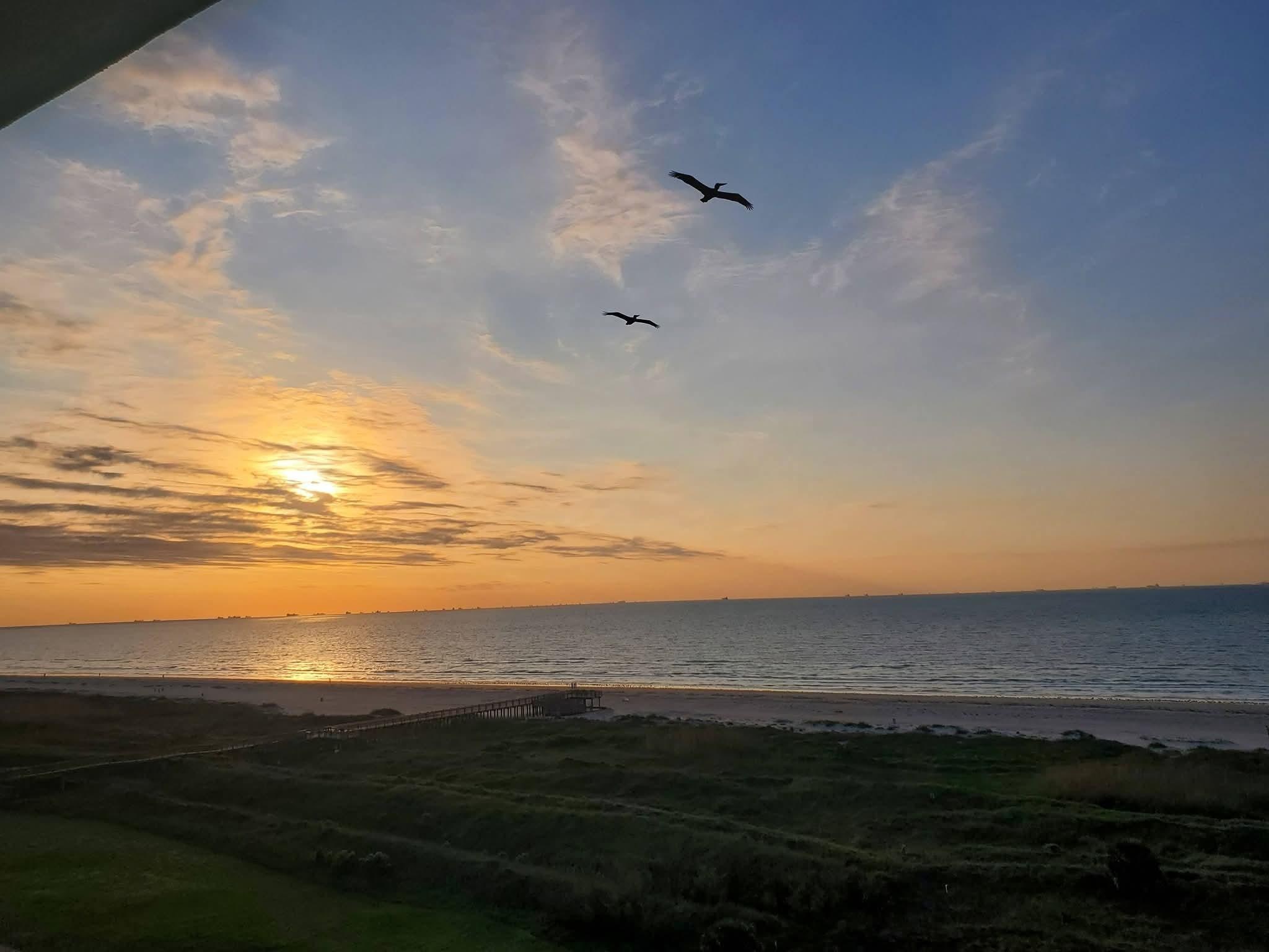 Dalla nostra posizione all'ottavo piano, puoi guardare il sorgere del sole dal balcone del soggiorno e ammirare i tramonti dal balcone della camera da letto. Oppure cammina all'aperto e direttamente sulla spiaggia, dove puoi passeggiare per chilometri. O semplicemente sedersi e crogiolarsi al sole. Non c'è Seawall Blvd. navigare.