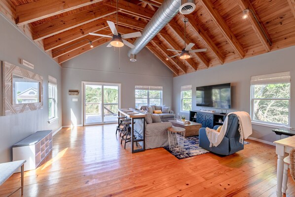 The family room is a great place to gather; stocked with games, outfitted with streaming services and WiFi, and fully furnished. The comfortable full size sofa, loveseat, and chair make the family room the perfect place to relax and unwind alongside loved ones. A Playstation 5 is also provided!