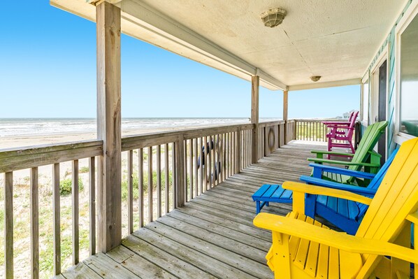 It’s time for a trip to Galveston’s best Sandbox! Enjoy a covered deck, open floor plan, expansive ground level patio and easy access to the beach at this updated beachfront home. Easily accommodate 8 people and up to 2 pups!