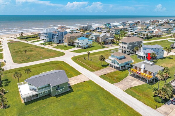 Grab some snacks and drinks - the expansive deck is the perfect place to sit back and relax! Feel the Gulf breeze and Galveston sun on your skin while enjoying the comfortable deck furniture. Dine al fresco on the large table, or head down to the shaded ground level patio. Ready to hit the beach? It’s just a short walk away!