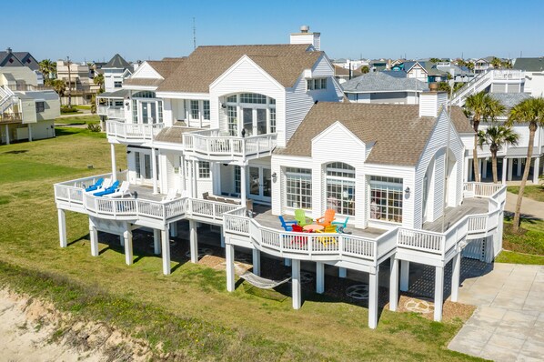 Just like a real Sea Eagle, this beachfront home is big, bold, and beautiful! 3 decks, a hot tub, spacious open floor plan, chef’s kitchen, and quick beach access are all perfect for group getaways or multigenerational family trips.
