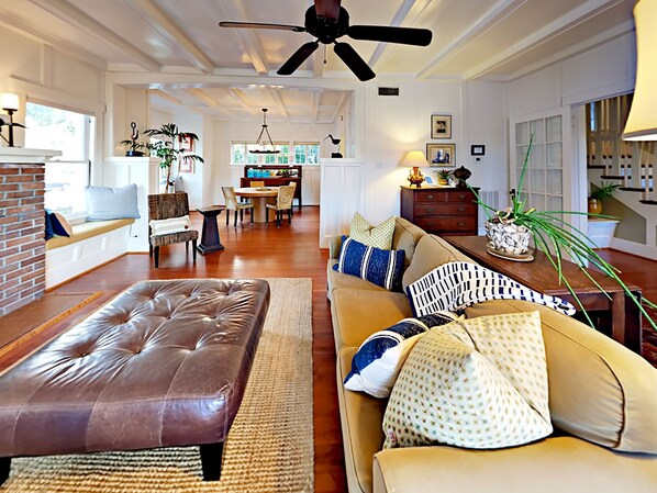 Circa. Il 1914 Craftsman Bungalow situato a 2 isolati dalla diga offre un ambiente tranquillo circondato da lussureggianti giardini tropicali. Restaurato con cura, i servizi includono una cucina gourmet ben attrezzata, un bagno in stile d'epoca aggiornato e arredi confortevoli. Godetevi le viste che si affacciano sui giardini privati.