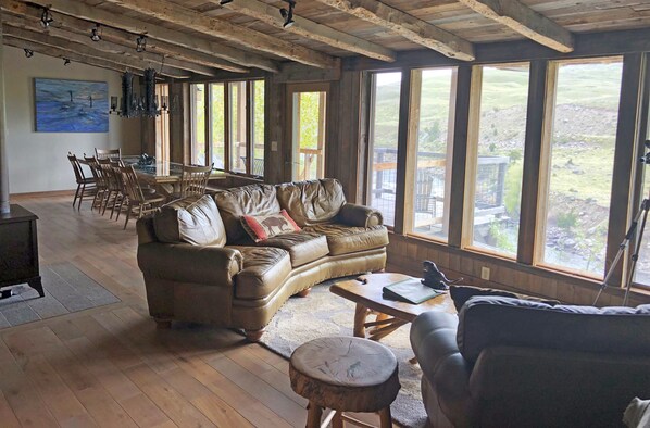 Inizia le tue giornate guardando l'alba meravigliosa sull'Electric Peak (una delle montagne più alte del Parco Nazionale di Yellowstone) proprio dal tavolo della colazione con i dolci suoni del fiume Yellowstone che scorre dalla proprietà. Il nostro lodge è arroccato sopra il fiume Yellowstone con un'ampia vista sul Parco Nazionale di Yellowstone. La fauna selvatica abbonda! Guarda aquile, falco pescatore e corvi volare sul fiume. Dalla sala da pranzo o dal ponte sul retro, abbiamo visto un branco di lupi inseguire e abbattere un pronghorn, aquile che pescano pesci nel fiume, branchi di bisonti al pascolo, alci che nuotano attraverso il fiume e un pronghorn che danno alla luce due gemelli! Non si sa mai cosa si può vedere: possono essere incontri di fauna selvatica assolutamente incredibili o semplicemente la straordinaria bellezza ispiratrice delle montagne e del fiume. La nostra vista è esposta a sud, quindi c'è molta luce solare per prendere tutto il giorno. Alla fine della giornata, griglia nel cortile e lascia che i bambini giochino sul set dell'altalena o semplicemente siedano sul ponte mentre guardi i riflessi del tramonto sul fiume e goditi le vedute del "grande cielo" su Montana e Yellowstone.