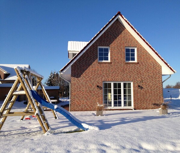 eccellente e spaziosa casa di nuova costruzione su due piani con giardino e sauna esterna dall'Associazione Turismo tedesco (DTV) con 4 stelle. La Perle casa sulla spiaggia si trova in una zona cottage di nuova costruzione proprio sulla diga di Thülsfelder (a circa 300 metri dalla spiaggia). La casa non è stata completata fino alla metà del 2015, offre 120 m² di spazio abitabile in grado di ospitare fino a sei persone. La casa dispone di sei posti letto suddivisi in quattro camere da letto (due doppie (un letto matrimoniale che misura 1,80 mx 2,00 m), camere doppie (un letto di 1,40 mx 2,00 m o 0 , 90 mx 2,00 m)). Se necessario, può essere fornita una culla. Inoltre ci sono due bagni, uno al piano terra e uno al piano superiore. Queste sono tutte dotate di doccia, wc e lavandino. Una lavatrice e uno stendino sono inoltre disponibili. Il soggiorno e zona pranzo all'aperto è dotata di un moderno angolo cottura (forno elettrico, lavastoviglie, forno a microonde, macchina per il caffè, bollitore e tostapane) e un tavolo da pranzo per sei persone. Se necessario, viene fornito un seggiolone. Inoltre si trova nel soggiorno e zona pranzo, un divano, un camino e un televisore a schermo piatto e una consolle per videogiochi Wii. Un altro televisore a schermo piatto è al piano di sopra, in una camera da letto matrimoniale. Tutta la casa è dotata di riscaldamento a pavimento, così come WLAN. Allo stesso modo, tutta la casa con le persiane esterne e z. T. è dotato anche di pieghe. Rilassatevi presso nelle giornate fredde, offre una sauna spazio sufficiente esterno. Il giardino comprende un barbecue e area giochi per bambini (scivolo, altalene) .Hinweise: A causa di lavori in corso nella zona di casa per le vacanze di recente creazione può causare temporaneamente inquinamento acustico delle costruzioni. La perla casa sulla spiaggia è una casa per non fumatori. Gli animali non sono ammessi. La città più vicina con negozi e locali notturni, una piscina, un maneggio e un campo da tennis si trova a circa 5 km di distanza. Si trova a circa 300 m da una spiaggia balneabile, che è possibile tornare comodamente a piedi. Arrivo dalle 15 orologio. Partenza fino alle 10.