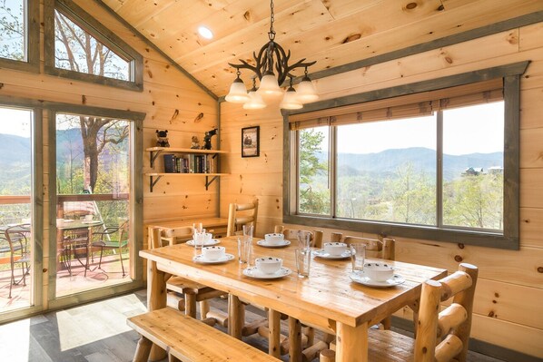 For larger groups, the sister cabin, Stargazer, is located next door and offers the same amazing views and amenities. Together, these cabins provide the perfect setting for a multi-family or group vacation.