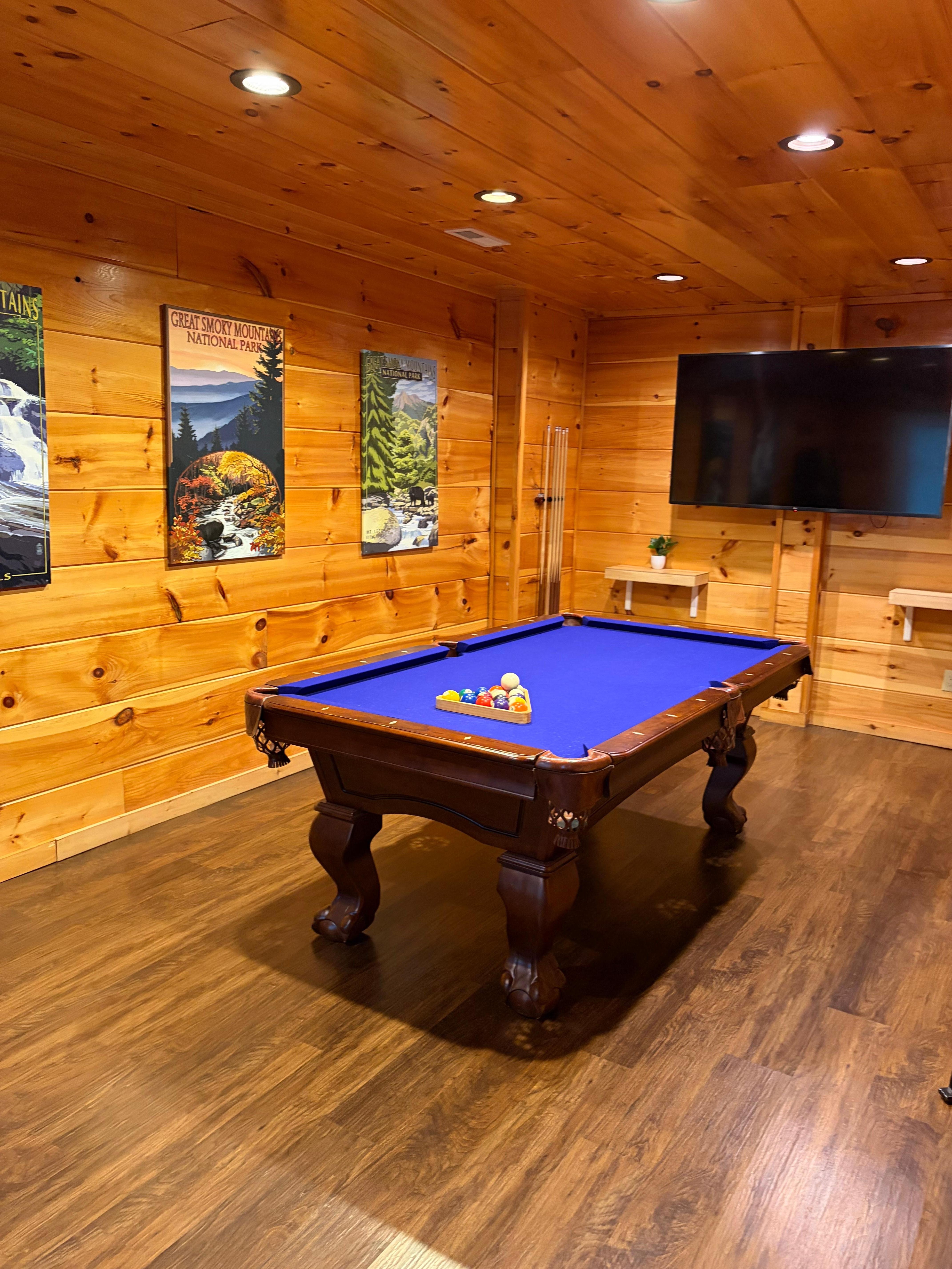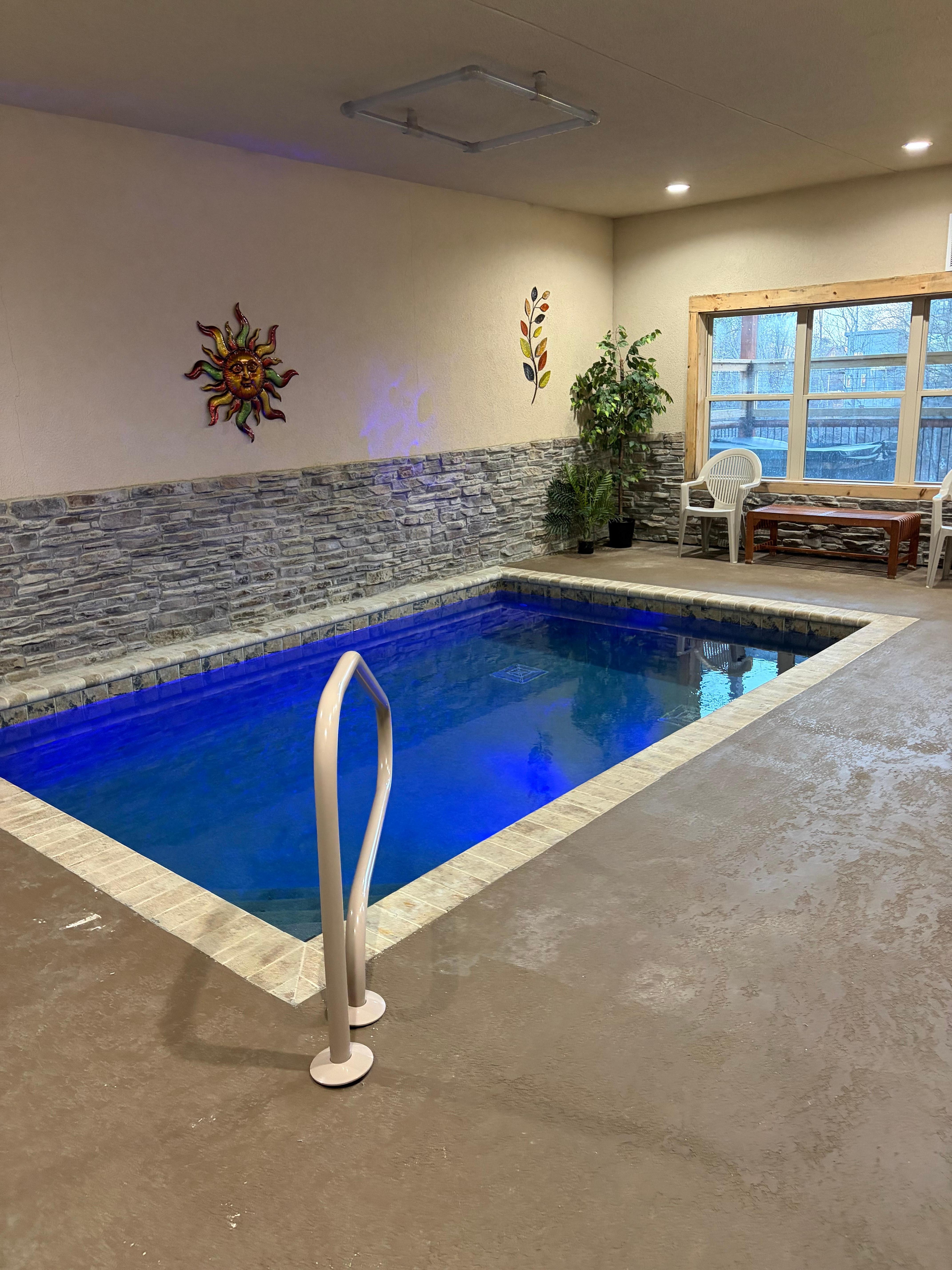 Heated Indoor Pool: Our cabin features a private indoor pool that is heated for your enjoyment. The pool`s temperature is carefully maintained between 82 and 84 degrees Fahrenheit, ensuring a comfortable swimming experience throughout your stay.