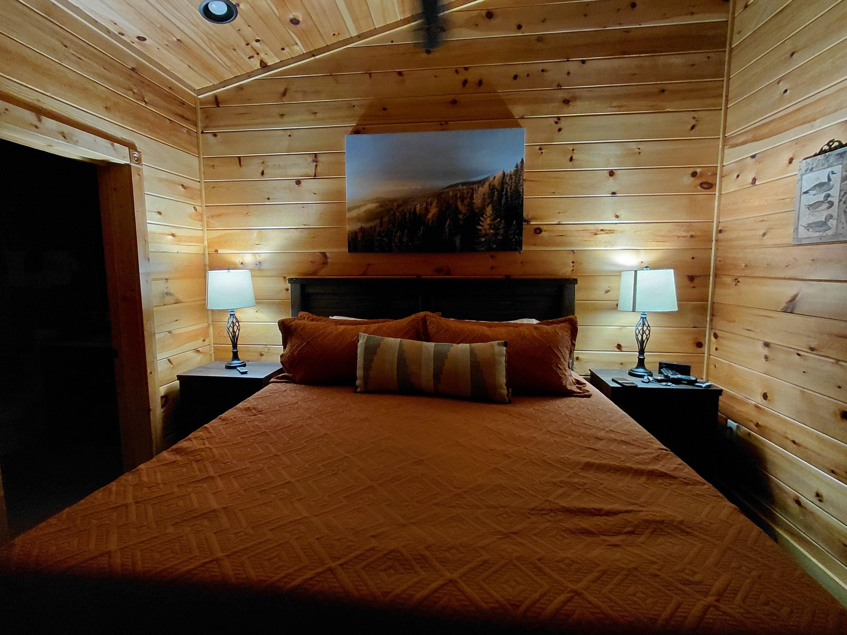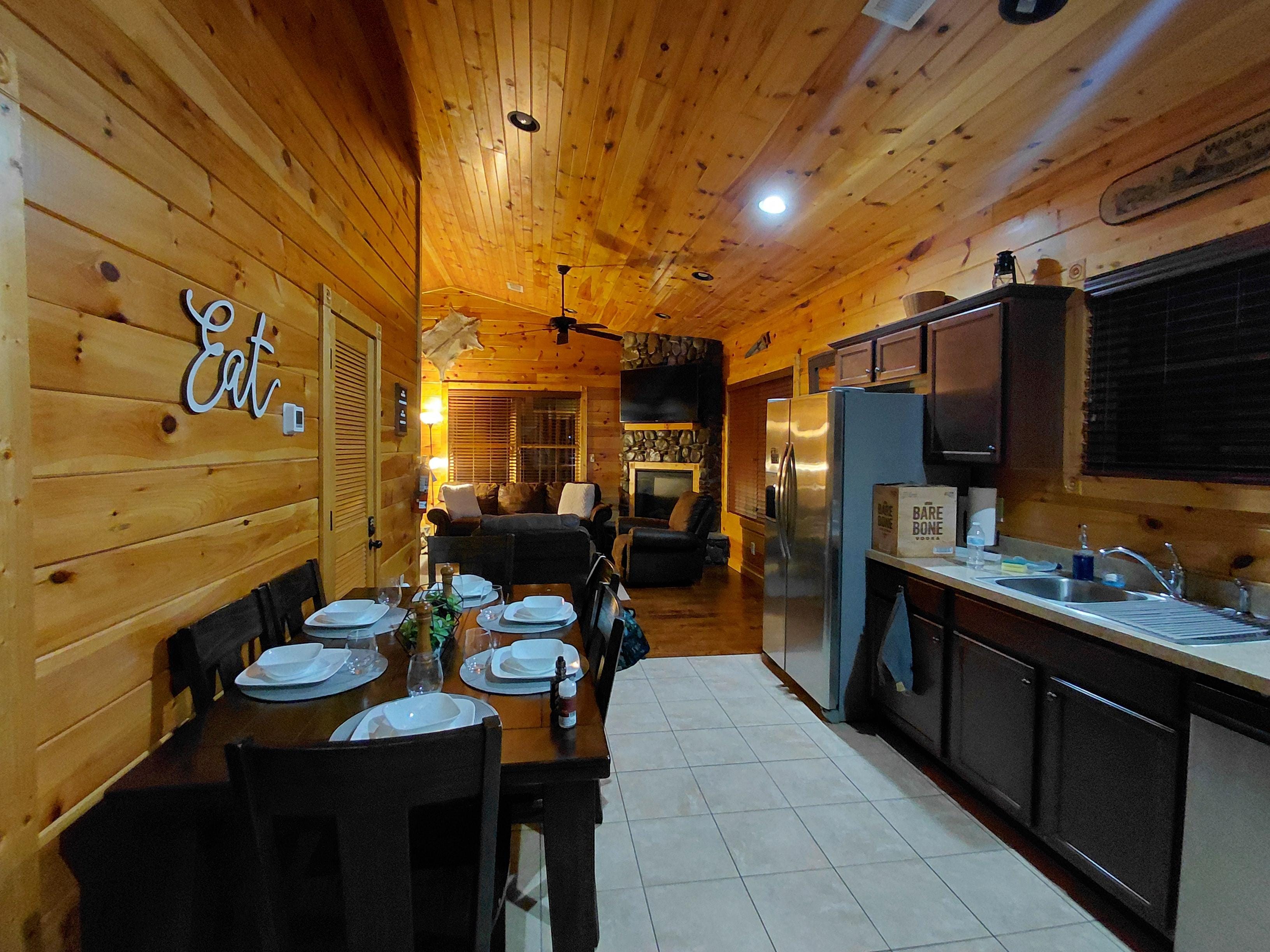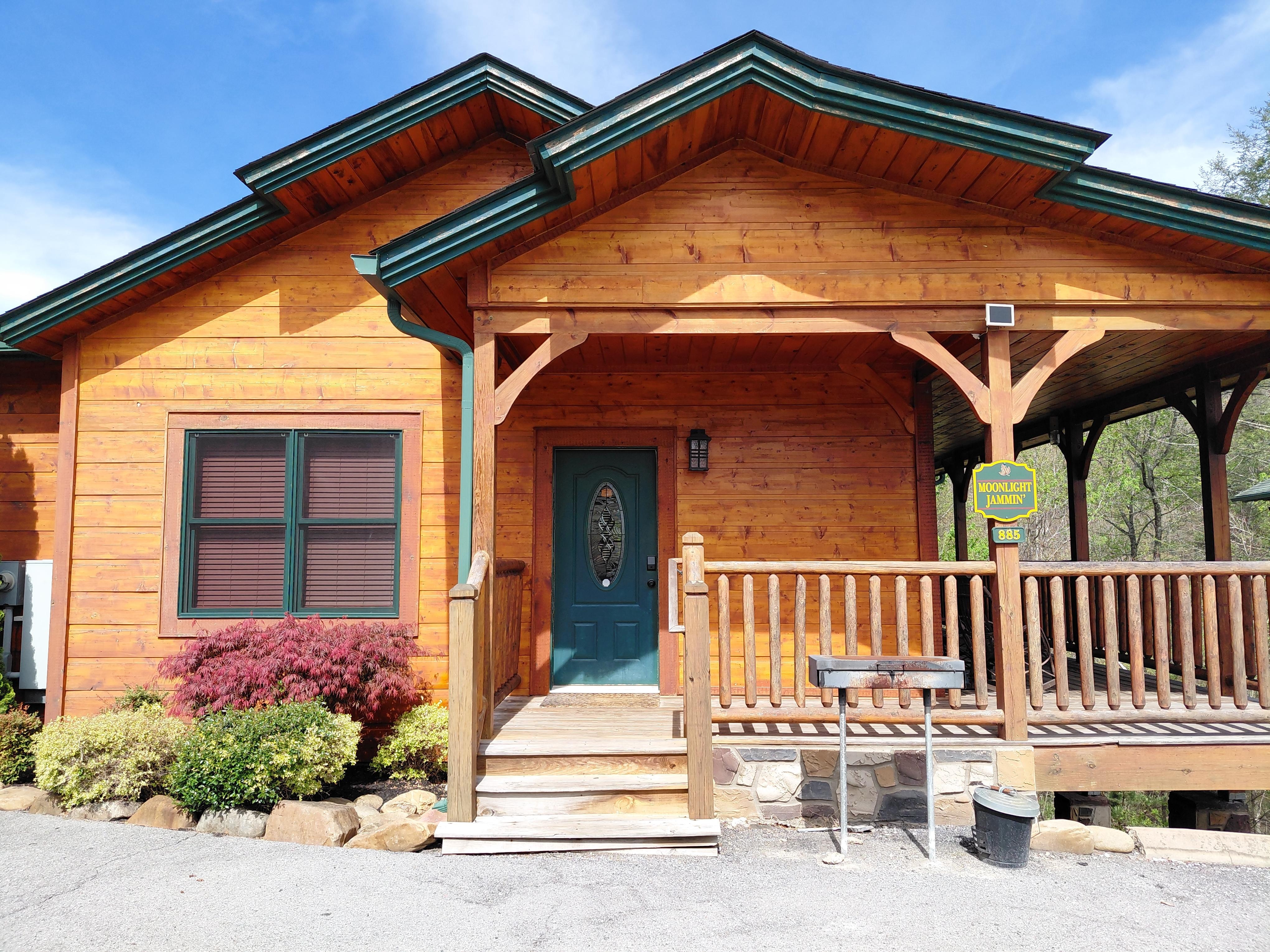 Newly built and furnished, Moonlight Jammin features more than the necessities and all of the comforts of home. Our King suite, bunk beds, and a comfy queen size pull out sofa provide enjoyable sleeping arrangements for up to 6. The Large dine in kitchen is fully stocked. Our back porch includes warm ambianic lighting, hanging egg chairs, plenty of rocking chairs and a relaxing jacuzzi hot tub. Cozy living room and a game room presenting a pool table, multicade arcade game, and a variety of board games that will keep you entertained throughout your stay! Unlimited wifi, smart and cable tv are always included :)