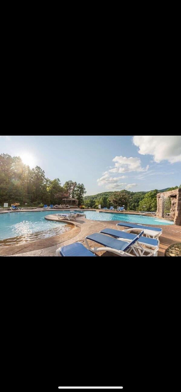 A short drive to downtown Gatlinburg, the cabin resides within the White Oak Lodge and Resort, a family-friendly community of cabins with amenities that include a salt water beach entry pool, a tennis court, fitness center and grilling stations. With easy access to and from the Parkway regardless of weather, no need to worry about steep, windy roads to get to your cabin :)