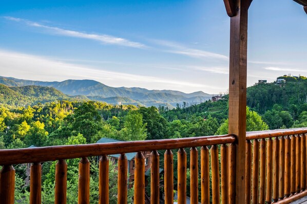 It is a beautiful cabin with such a beautiful view … best view we ever experienced!!!The three decks are a great place to start and end each day! We saw bears from our deck each day.Five bedrooms each having their own bathroom was a great plus.The game room was lots of fun and a great hangout space!The large dining table was perfect for all of us to dine together and play family games!Thank you for such a great cabin to enjoy our family time!!!
