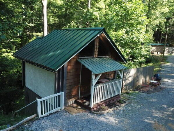 Enjoy a romantic stay in This fantastic couples cabin. Super cute and We provide Xfinity super high speed internet, jacuzzi tub, Antique water closet (toilet), 40” Roku tv, enjoy streaming our netflix, prime video and more. LG bt sound system, queen size bed, kitchen with full size fridge, microwave, pizza/toaster oven, And a burner and griddle, there’s a climbing loft with pull down stairs thats perfect for reading a book or just relaxing. We are Located in the Arts and Crafts Community of Gatlinburg. 10min to downtown Gatlinburg strip, when leaving the property just turn right at the first four stops and your there. 15 min to dollywood and pigeon forge. Great location for avoiding traffic using back roads yet close to town. If you need any directions or anything at all while your here don’t hesitate to ask. If your into staying in we have a charcoal grill , outdoor fire pit, picnic tables, great place to fly your rc toys as well. We have private walking trails on our property that borders the national park. Also We have 2 very friendly rescue dogs. Max and angle and a recent rescue named Ruby. they keep the bears away. We do ask you to smoke cigarettes outside, 420 friendly, pet friendly, and we’re just plain ole friendly too!! We have other units available, in case you have friends that you’d like to bring along. All units use coded locks for Self check in so late arrivals are no problem. For your protection as well as ours We use video surveillance outside, covering only the entry points. Also we charge A 50$ pet fee per pet , this is not collected through VRBO so we ask that you pay this before your arrival, just send a message after booking the property and let us know so we have that out of the way. We have great off season rates, Jan Feb March so check that out for some cheap thrills! Come see us here at Gatlinburgs best kept secret. Feel free to let myself or Andrea know if you have any questions or need anything at all. Thanks, Patrick and Andrea. Owners, Gatlinburgs Best Kept Secret..
