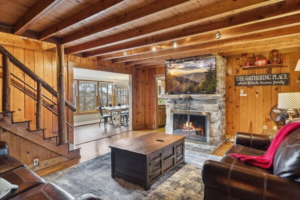 Inviting living room with a seasonal fireplace — the heart of the home