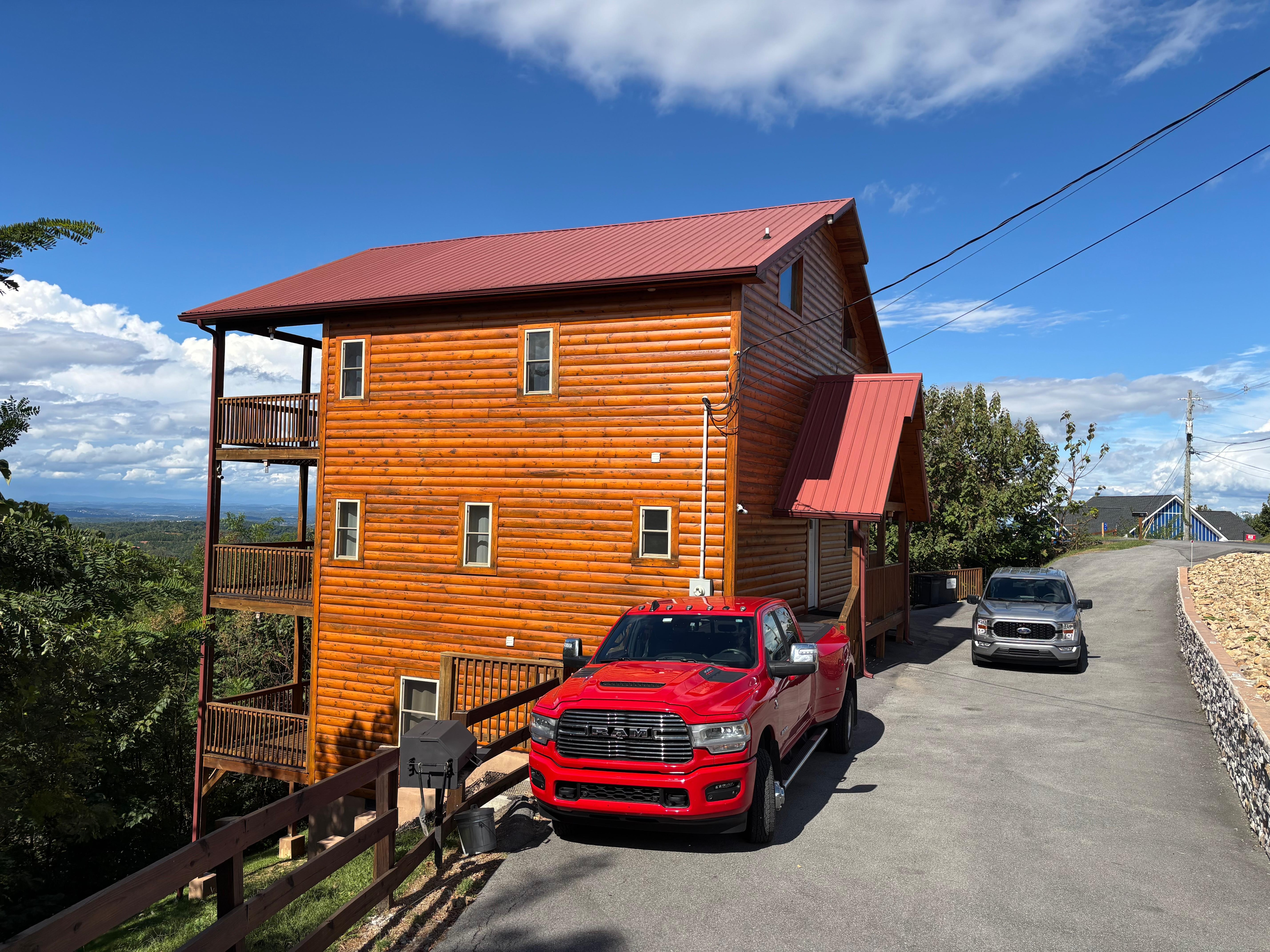 What a view! We chose this cabin because of the location on top of the ridge with 2 decks and a patio and then fell in love with everything else it provided for our 3 night stay. The place looks brand new with 2 master suites on 2 floors plus another full bedroom/bath in the basement walkout with 2 queen beds, game room and movie room. Furnished kitchen as part of the family room with fireplace and vaulted ceiling. Absolutely perfect! We spent the evenings after dinner in town, sitting in rockers on ehe deck taking in the amazing view across the huge valley with stars and lights from town and other houses. The best part wa hearing the rain one evening on the metal roof. The host was very accommodating and fast to respond to questions. They even gave us a heads up on the weather and 2 methods of driving up/down the mountain as needed. Very conveniently located for both ends of Gatlinburg access. I’m sure you will love it too!
