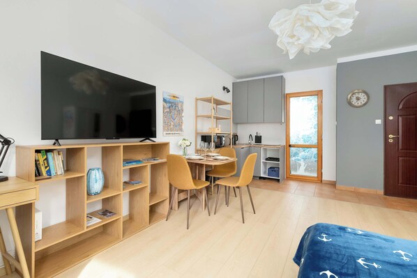 Tutte le camere di Beniowskiego 7A/2 Gdynia | Cozy Studio | Workspace | Near the SKM Station dispongono di comode dotazioni che includono studi, tavoli da pranzo e l'accesso a internet.