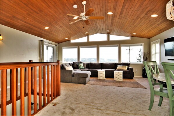 Benvenuti a casa a questa spettacolare vista di 1.940 'a casa in un ambiente straordinario con viste pittoresche del glorioso Monte. Ranieri, Vashon Island, Colvos Passage, Pt. Ruston, la baia di Commencement e il traffico marino in continuo mutamento e la vista della fauna selvatica. Ci sono numerosi aggiornamenti dettagliati a questa casa speciale, tra cui ripiani in granito, elettrodomestici da cucina in acciaio e una pianta open-concept con grande sala e soffitti a volta. Il master BR w / King Bed ensuite vasca idromassaggio si trovano al livello principale e un ospite 1/2 bagno e ripostiglio w / lavatrice e asciugatrice. Al piano inferiore vi godrete una camera da letto della regina, e una camera da letto a castello separata da un bagno completo. Questa zona ha la propria entrata dall'esterno con il proprio mini soggiorno che può ospitare anche ospiti aggiuntivi.