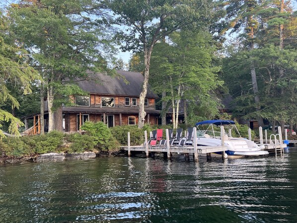 5 posti barca in una baia protetta privata. Paletto e trave in quercia del 1800, 3 piani, noce nero, ciliegio, mogano e legno di abete, banconi in granito africano, cucina su misura, sistema di intrattenimento in legno di cedro su misura. Zona giorno esterna coperta. Taxi acqueo disponibile su richiesta.