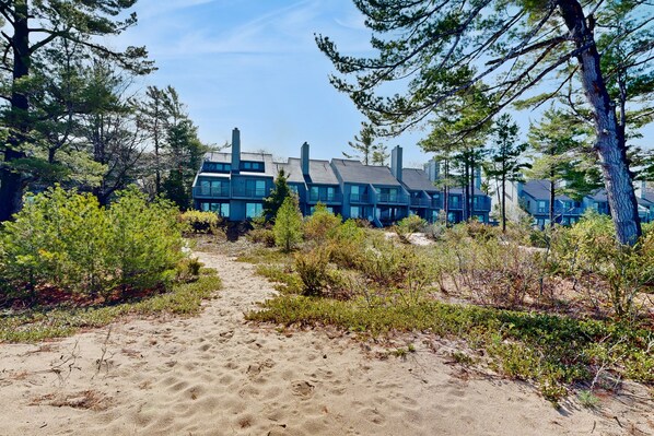 Desirable beachfront condo in Glen Arbor with patio, fireplace, kitchenette & AC