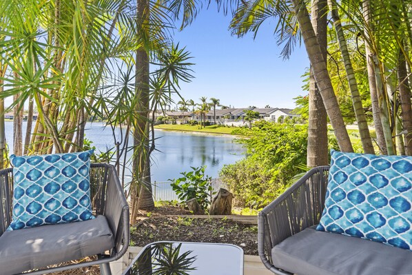 The main kitchen and dining space overlooks the waterfront and is stocked with all the necessities to help you unwind. Separate to this space is a large lounge room with plenty of seating.