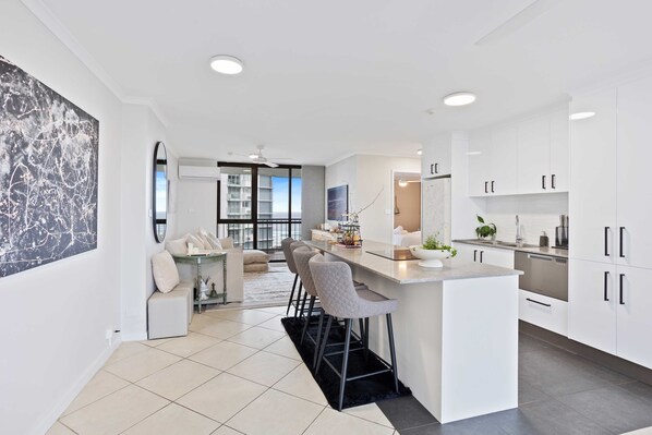 The fully renovated kitchen gives you the luxuries you need on holidays, but lets face it - cooking is the last thing you want to do with the world class eateries of Burleigh on your doorstep.
