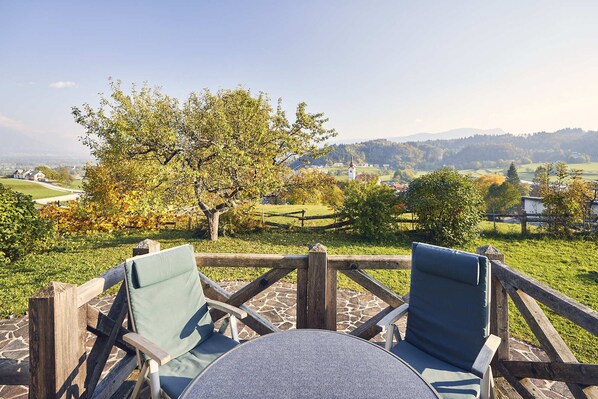 Dalla casa si ha una vista sul castello di Bled, sono 2,5 km in linea d'aria dal lago di Bled. Posizione assolutamente tranquilla e riservata. Strada di accesso privata asfaltata con posti auto sufficienti di fronte alla casa. I raffinati arredi in stile rustico con una spaziosa cucina offrono un ambiente piacevole. Le camere e i bagni sono luminosi e di alta qualità. La camera da letto sotto il tetto è completamente vetrata sulle montagne, ti svegli quasi nel cielo.