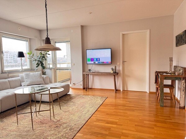 Luxury Waterfront in Eriksberg: Stunning Sea View & Free Parking The Space: • Stunning Views: Enjoy panoramic Sea & Harbor views from every room and your private spacious terrace. Watch the ships pass by in one of Gothenburg’s most iconic settings. • Modern Comfort: A fully equipped, stylishly furnished apartment designed for relaxation and high-end living. • Free Private Parking: A rare and valuable feature in this area, saving you time and stress. Location & Highlights: • Iconic Eriksberg: Steps away from the famous Eriksberg Crane and the beautiful waterfront promenade lined with top-rated restaurants and cafes. • Easy Access to City Center: Take the Älvsnabben ferry (just a short walk away) for a scenic 10-15minute boat ride directly to the heart of Gothenburg. • Gateway to the Archipelago: Use the local ferry from Eriksberg pier to easily visit Gothenburg’s breathtaking islands. Experience authentic fishing villages and beautiful nature just a boat ride away. Amenities: • High-speed Wi-Fi • Fully equipped kitchen • Private Terrace with outdoor seating • Walking distance to supermarkets and public transport
