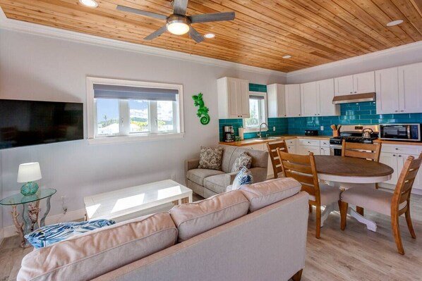 Completed in 2022, Curly Tail Cottage is a beautifully appointed 2-bedroom, 2-bath cottage with laundry, just steps from the beach and fun at Grabbers Bed Bar & Grill. Tucked in the settlement, it’s a short walk to everything you need, including the dock, grocery store and world-famous Nippers Beach Bar.