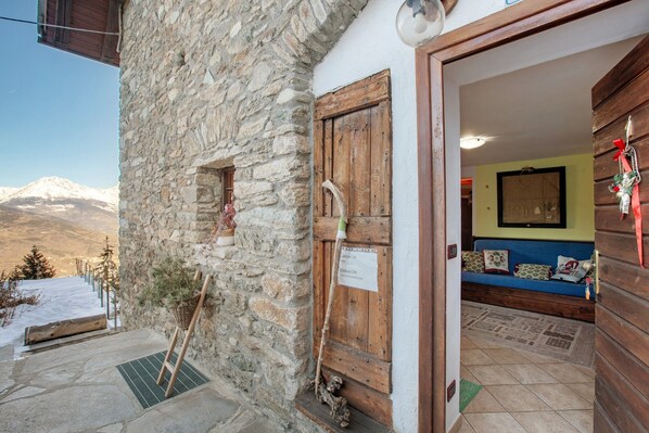 L'appartamento è in una posizione tranquilla soleggiata a sud, luminoso, arredamento funzionale e confortevole, uscita sul balcone con vista panoramica su Aosta e sulla Valle. C'è la possibilità di godere del panorama e di un po' di relax in giardino ad uso privato. Locale per biciclette/sci/passeggini, parcheggio all'aperto davanti a casa.