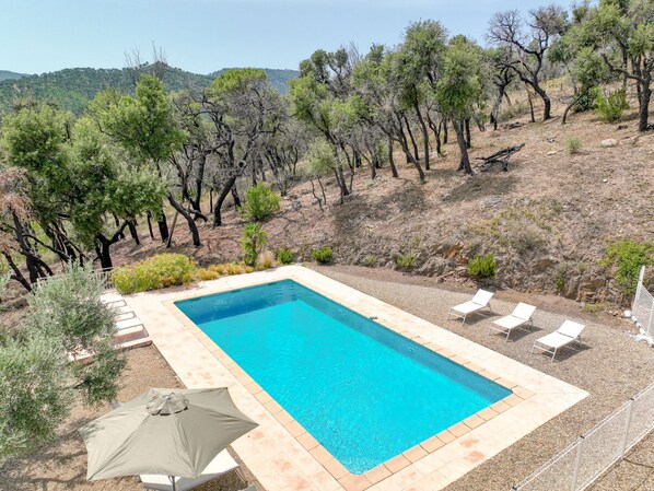 Casa "Mas des Chênes", piacevole, circondata da vigne. A 5 km dal centro di Grimaud, a 15 km dal centro di Saint Tropez, a 7 km dal centro di Cogolin, posizione isolata sul pendio, a 10 km dal mare. Per uso privato: terreno 3'000 m2 con alberi, piscina recintata (11 x 5 m, disponibilità stagionale: 01.Gen. - 31.Dic.). Tennis tavolo, campo da bocce, pulizia piscina da parte del proprietario/giardiniere. Parcheggio nella proprietà. Negozio 5 km, fermata bus 4 km, spiaggia sabbiosa 10 km.