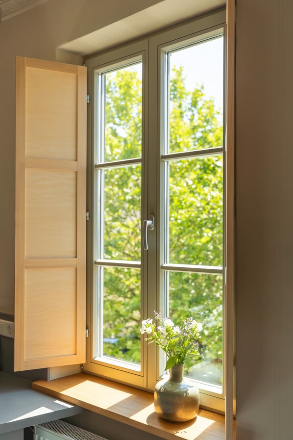 Questa struttura è composta da appartamenti boutique arredati di alta qualità, costruiti in una casa a graticcio di oltre cento anni che utilizza solo materiali da costruzione sani. Gli elementi storici sono stati in gran parte conservati.