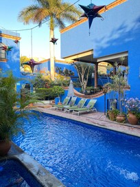 + the hotel is beautiful, its colourful, lots of plants and very quiet. Its a peaceful oasis away from sometimes loud Mexico