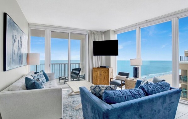 Goditi la nostra "casa del vetro" e osserva i delfini che giocano, i surfisti volano e il Golfo del Messico, in tutta la sua gloria, si tuffa nel profondo del tuo cuore.
