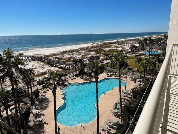 Great view of the gulf and the pool! Highly recommend this property. With having two older daughters that like to come and go from the beach, to the pool, to the room, we felt very comfortable letting do what they wanted on the resort. Laura was great with responding when we had any questions. Will likely book again when we come back to Gulf Shores.
