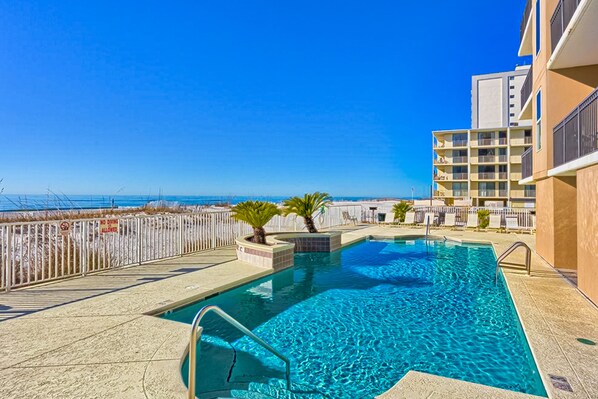 Beachfront condo with shared pool, outdoor shower, and beach access