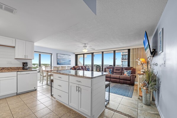 • Fully Equipped Kitchen w/Appliances, Blender, Cookware, Dishes, Utensils & Drinkware
