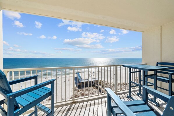 The primary bedroom has a comfortable king size bed and access to the amazing views you can see from the balcony. The bathroom has a tub shower combo. The second bedroom has 2 twin beds. The guest bathroom is a full bath with a tub/shower combo. There is a queen size sofa sleeper that allows this beach retreat to sleep up to 6 people.