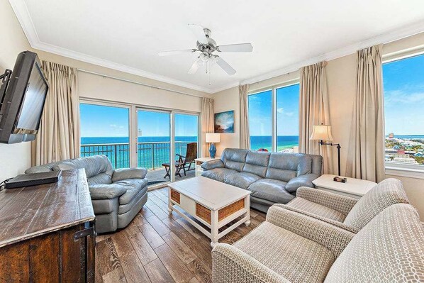 Questo lussuoso condominio con 2 camere da letto e 2 bagni, Gulf Shores, è una delle più grandi e più desiderabili unità angolari occidentali nella Crystal Tower. A poco più di 1.200 piedi quadrati è più grande del 15%. Questi condomini d'angolo più grandi si trovano lontano dal rumore e dal traffico dell'ascensore e hanno due balconi separati più due master suite e finestre laterali per più luce naturale e viste mozzafiato sulla sera. Le grandi finestre rivolte a ovest di questo condominio angolare consentono la visione di tramonti spettacolari dal comfort delle aree giorno e pranzo di concetto aperto. La cucina è completamente attrezzata con ripiani in granito ed elettrodomestici moderni, tra cui un forno a microonde, una macchinetta del caffè, un tostapane, una macchina del ghiaccio e un frullatore. Il tavolo da pranzo può ospitare comodamente sei persone con posti a sedere aggiuntivi per due al bar. Nel soggiorno, un esclusivo tavolino elevatore contiene carte, libri e giochi da tavolo e offre un ulteriore posto conveniente per cenare o fare spuntini. La master suite anteriore si trova fuori dal soggiorno e ha un letto matrimoniale, Smart TV a schermo piatto con DVR, cabina armadio, bagno annesso con doppio lavabo e accesso al balcone anteriore. Questo balcone di 30 piedi è accessibile anche dal soggiorno e ha un tavolo e sedie per mangiare o bere mentre si gode una vista mozzafiato sul Golfo del Messico e tramonti spettacolari. In fondo all'ampia sala, la suite padronale posteriore ha anche un letto king size, Smart TV a schermo piatto con DVR, cabina armadio e bagno annesso, oltre all'accesso esclusivo al balcone posteriore. Questo 2 ° balcone ha sedie e un tavolino e offre splendide viste sulla piccola laguna e sui tramonti in un ambiente privato. Oltre ai due letti king size e un divano letto matrimoniale nel soggiorno, i 160 piedi quadrati extra di questo condominio d'angolo ospitano il materasso ad aria fornito, che può ospitare altri due giovani per una capacità totale di otto persone . La lavanderia ha un ferro e un asse da stiro e una lavatrice e asciugatrice di grandi dimensioni di grandi dimensioni. Inoltre, il condominio dispone di aria condizionata, ventilatori a soffitto, pavimenti piastrellati, un deumidificatore, connessione internet Wi-Fi gratuita, un totale di tre Smart TV a schermo piatto con DVR e un telefono fisso. I proprietari di Crystal Tower 1509 hanno apportato ogni possibile miglioramento per offrire agli ospiti la migliore vacanza possibile nella speranza che diventi la tua casa lontano da casa.