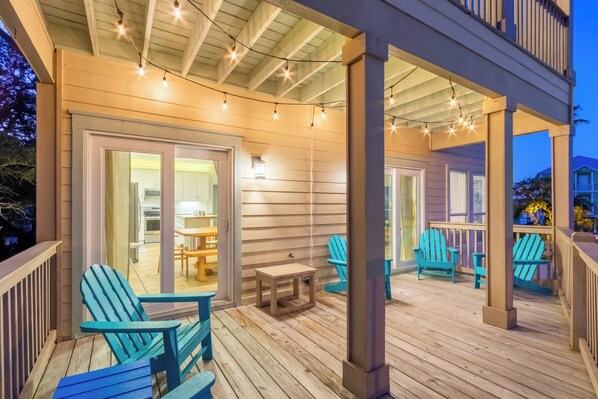 Everything about the house was set up well and really helped us be comfortable and have what we needed! The bedrooms/bathrooms beautiful. The porches were awesome and the pier/beach absolutely wonderful for all the kids! The walkabikity A+++ Thank you!!