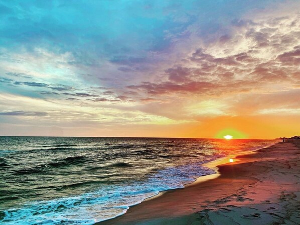 The pier is perfect for fishing, crabbing, or enjoying the beautiful sunset. The water near the shore is sandy and shallow; our kids love spending time playing in the water without the additional risk of undertows or larger waves.