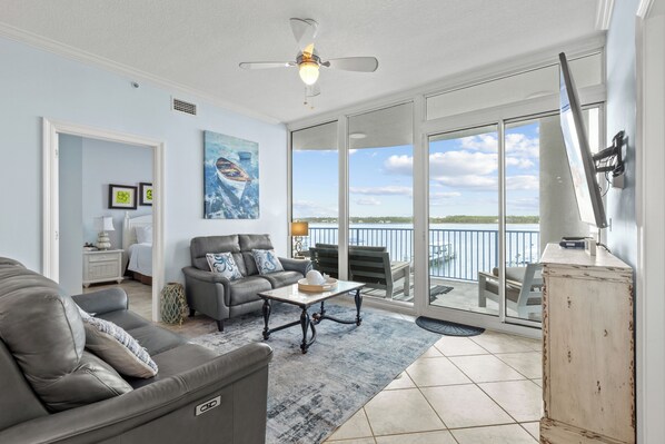We thoroughly enjoyed our trip. This property is gorgeous. The views…wow! Both bedrooms have a beautiful view. The balcony is fabulous with nice furniture and a view that is to die for. Bars are still safe enough for a one year old. My girls enjoyed both the beach and pier. They fished on the pier (bring live bait) and swam on the beach side. The beach is just a walk across the street. Book this place! You won’t be disappointed.