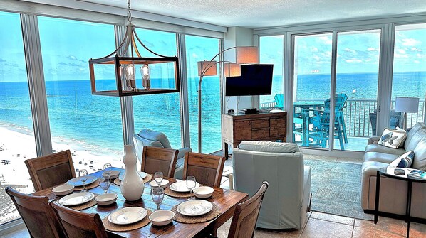 Situato su West Beach, nel cuore delle Costa del Golfo. Questa unità è stata recentemente decorata con nuova vernice in tutto, nuovo tappeto nelle camere da letto, nuovi televisori a schermo piatto dappertutto e alcuni nuovi mobili. Questo condominio per non fumatori al 22 ° piano si trova nell'angolo est con vista mozzafiato su spiagge di sabbia bianca e acqua scintillante così limpida che puoi vedere i delfini e uno squalo occasionale! Vista dal pavimento al soffitto dell'oceano e accesso al balcone anteriore dal soggiorno e dalla camera da letto principale. 9 soffitti in tutto. Accesso al balcone dalla 2a e 3a camera da letto con vista sull'oceano e sulla laguna. 3 camere da letto, 3 bagni. Ci sono 2 letti king-size e 1 letto matrimoniale nelle camere da letto. Recentemente sono stati acquistati nuovi materassi per tutti e tre i letti. Abbiamo un divano reclinabile elettrico e sedili amorosi nel soggiorno. Disponiamo di 2 materassi pieghevoli per un ulteriore spazio per dormire.