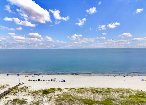We had a beautiful week at the beach. Our room was just as described! Beautiful and clean. I was so happy to to find 2 beach chairs, umbrella and wagon for us to use in a closet. That was a nice surprise. The beach and weather was perfect! We watched dolphins playing just off the beach every morning. The pools were nice and fun at night. We had the most relaxing week. We will absolutely be back.