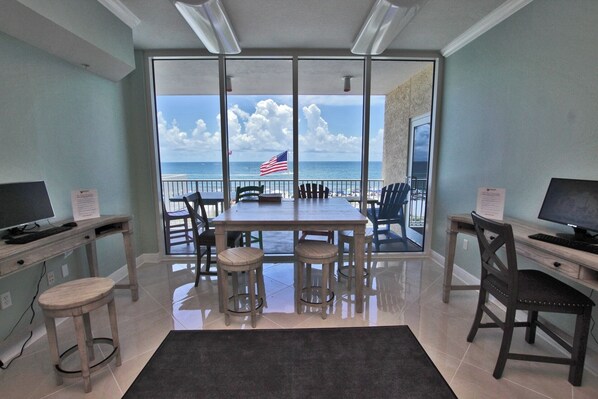 Rinnovato di recente nel 2018! Gli aggiornamenti includono: soggiorno e sala da pranzo e mobili d?cor, materassi memory foam, e (2) 55 ?? Televisori LG 4K UHD. Questo spazioso condominio da 2 camere da letto con 2 camere da letto e 2 bagni vanta splendidi pavimenti piastrellati e si trova al 5 ° piano del lussuoso condominio San Carlos, nel cuore delle coste del Golfo. La zona giorno dispone di un divano letto queen-size integrato da un paio di sedie a dondolo, un 55 ?? Televisore LG 4K UHD e vanta vetrate a tutta altezza che offrono una vista senza ostacoli sul Golfo del Messico. Il tavolo da pranzo può ospitare comodamente sei persone con posti a sedere supplementari per sei al bar della cucina. Goditi la preparazione dei pasti con la cucina completamente attrezzata con mobili e elettrodomestici bianchi, e mescola i tuoi drink preferiti al bar adiacente. La camera da letto principale include un letto king-size, un materasso memory foam, 55 ?? TV LG 4K UHD e accesso al balcone anteriore del golfo. Immergetevi nel lusso del bagno principale con doppio lavabo, ampia vasca idromassaggio angolare e doccia separata. La camera degli ospiti dispone di 2 letti full-size con materassi memory foam e 26 ?? Televisione Vizio HD. Una lavatrice e asciugatrice full-size si trovano all'interno del condominio. Il balcone anteriore del golfo è abbastanza grande da ospitare ulteriori punti ristoro al tavolo da pranzo all'aperto per quattro o semplicemente godersi il tramonto su una poltrona. San Carlos è a pochi passi da Sea-n-Suds, dal Hangout e da numerosi altri luoghi di ristoro / intrattenimento / shopping.