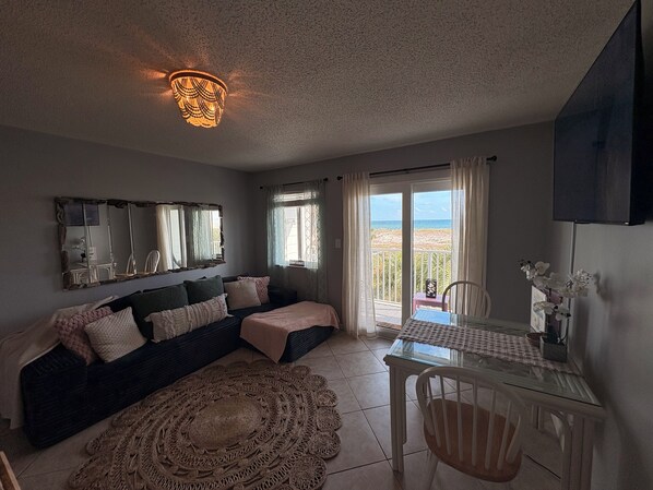 Cute little place to stay right on the beach! The view is beautiful and the balcony is one of the bigger ones I've seen that directly faces the beach! Overall cleanliness was good, could use a good DEEP clean, but overall it was nice. I would suggest maybe blackout curtains for both the bedroom and definitely the balcony. The lights in the hallways stay on all night and the living room is super bright the moment the sun comes up. Super convenient to the pool and beach. Away from all the hustle and bustle of Gulf Shores but still has cute restaurants (and ice cream shops!) nearby. Definitely would love to stay again!