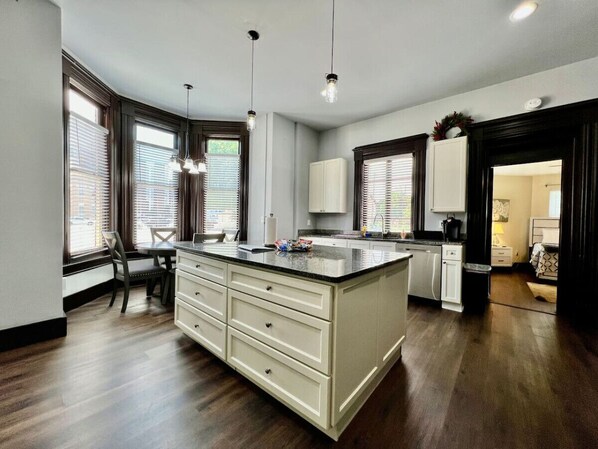 Modern feel in this 3500 square foot 1940's 3-story mansion nestled just inside the German Village of Downtown Hamilton. Whether you are here for an event at Spooky Nook, a family getaway to Kings Island, or a work retreat, this home is perfect for your large group! Conveniently located between both the Dayton airport and Cincinnati Northern Kentucky Airport (CVG). Walking distance to the river, downtown, dining along river, and shopping.